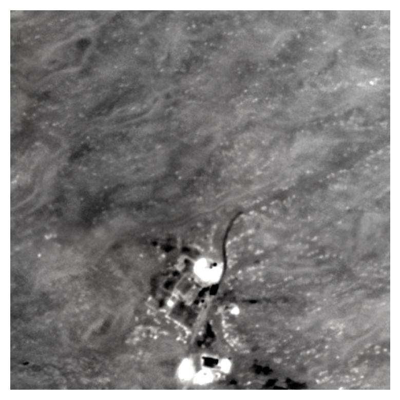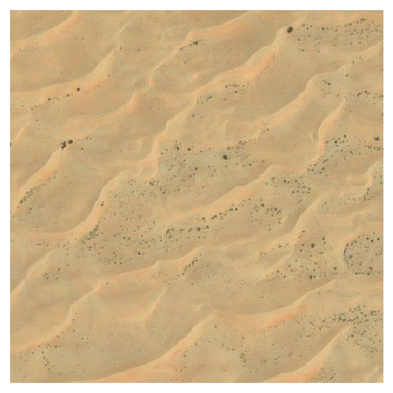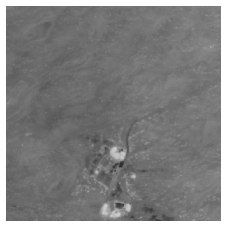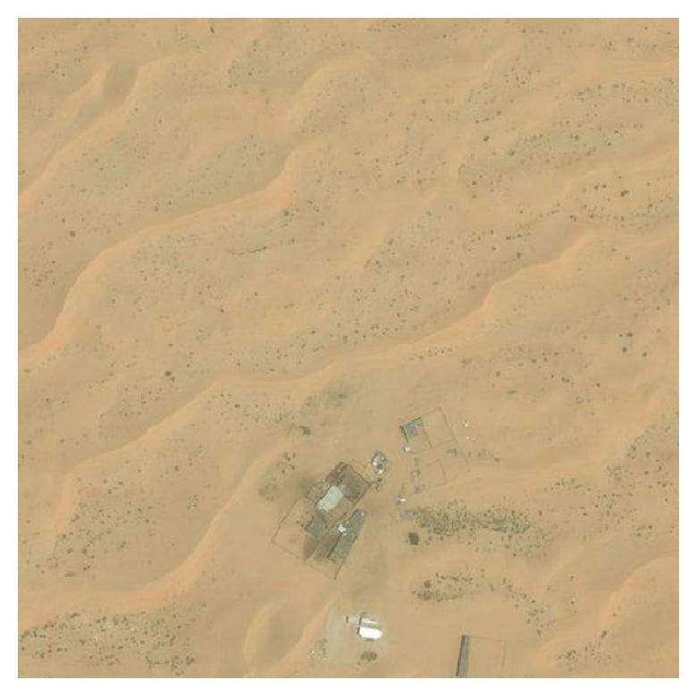 Thermal maps were reconstructed via structure-from-motion (SfM) and orthorectified by aligning with Bing satellite maps at the same spatial resolution. The dataset covers 33 km² of predominantly desert terrain with scattered farms, roads, and buildings. The low-contrast, self-similar thermal features in desert regions make fine-grained geo-localization particularly challenging.